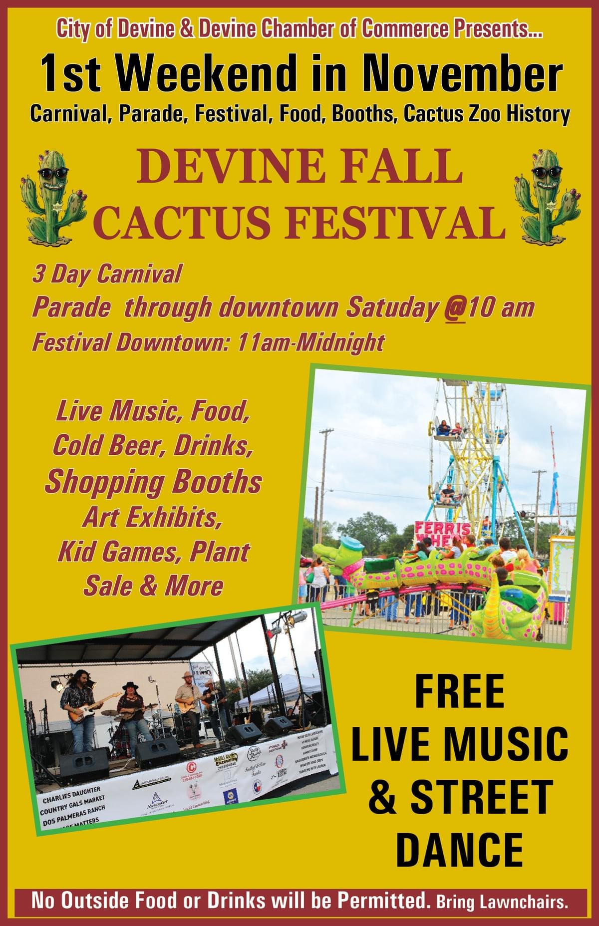 The annual Devine Fall Cactus Festival is held the first weekend in November each year.